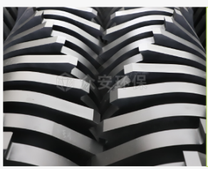 粗破碎機由電機或液壓系統(tǒng)提供動力,驅(qū)動刀軸帶動動刀轉(zhuǎn)子中低速旋轉(zhuǎn),刀具之間相互撕裂、剪切作用對物料進行破碎。